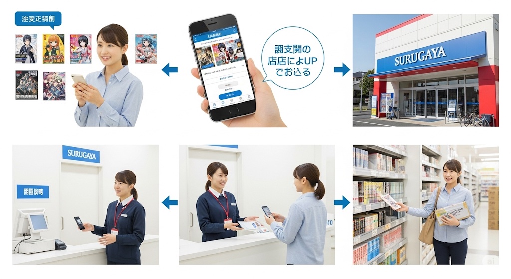 このように、駿河屋の店舗受け取りは、オンラインで手軽に注文し、後日都合の良いタイミングで店舗へ商品を受け取りに行くだけ、という簡単な流れで利用できます。