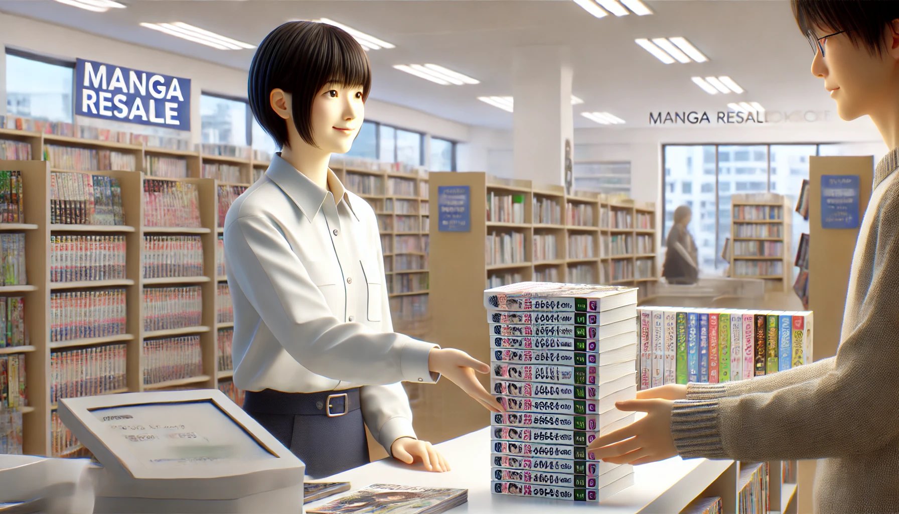 準備ができたら、漫画と身分証明書を持って店舗へ向かいます。店内に買取カウンターが設置されているので、そこで査定を依頼します。混雑時には番号札を渡されて待つこともあります。